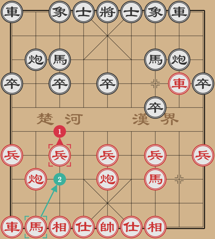 抢挺7卒有两个目的,一是制住红棋的三路马,二是活通黑棋的7路马。